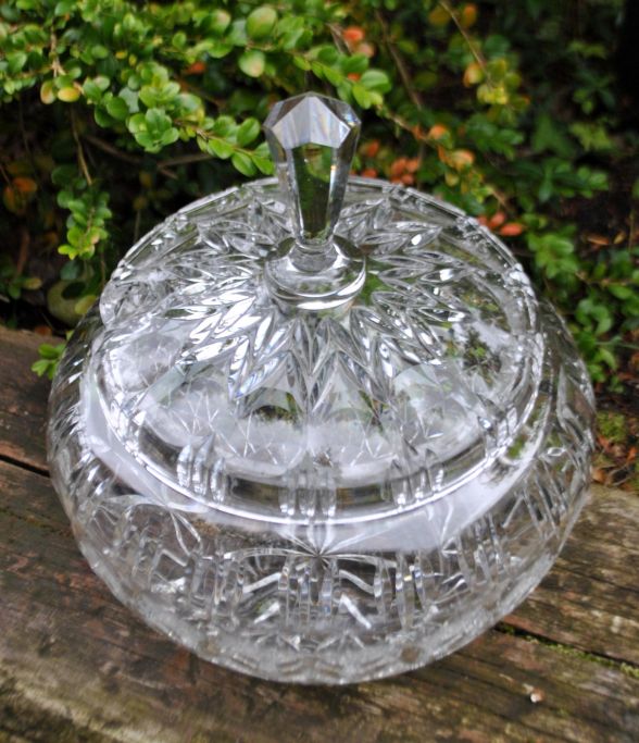 Bowleschale aus Kristall mit Deckel, 20. Jahrhundert.